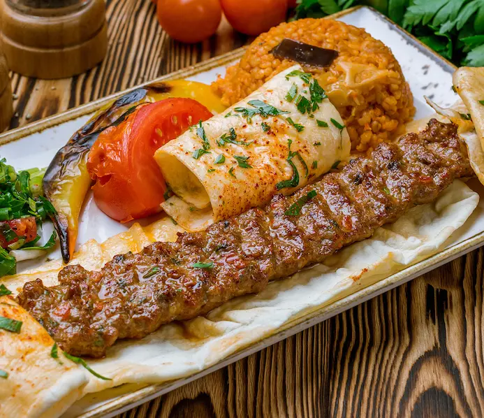 Traditionally, the meat used to make Adana kebab has a special ingredient—lamb tail fat from a breed of sheep in Turkey. Its thick tail stores fat, making it the best choice.