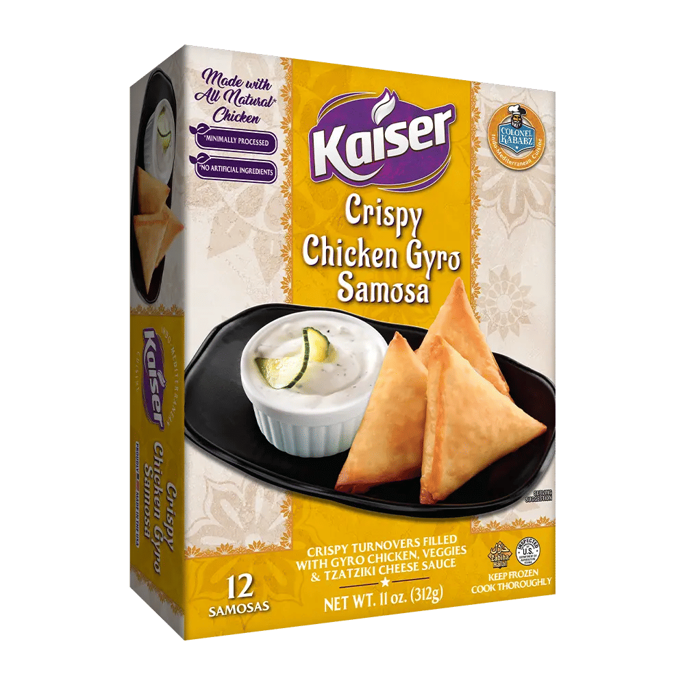 Make your tea time exciting with Kaiser Chicken Gyro Samosa – crispy turnovers filled with delicious chicken gyro & veggies, and served with tzatziki cheese sauce!